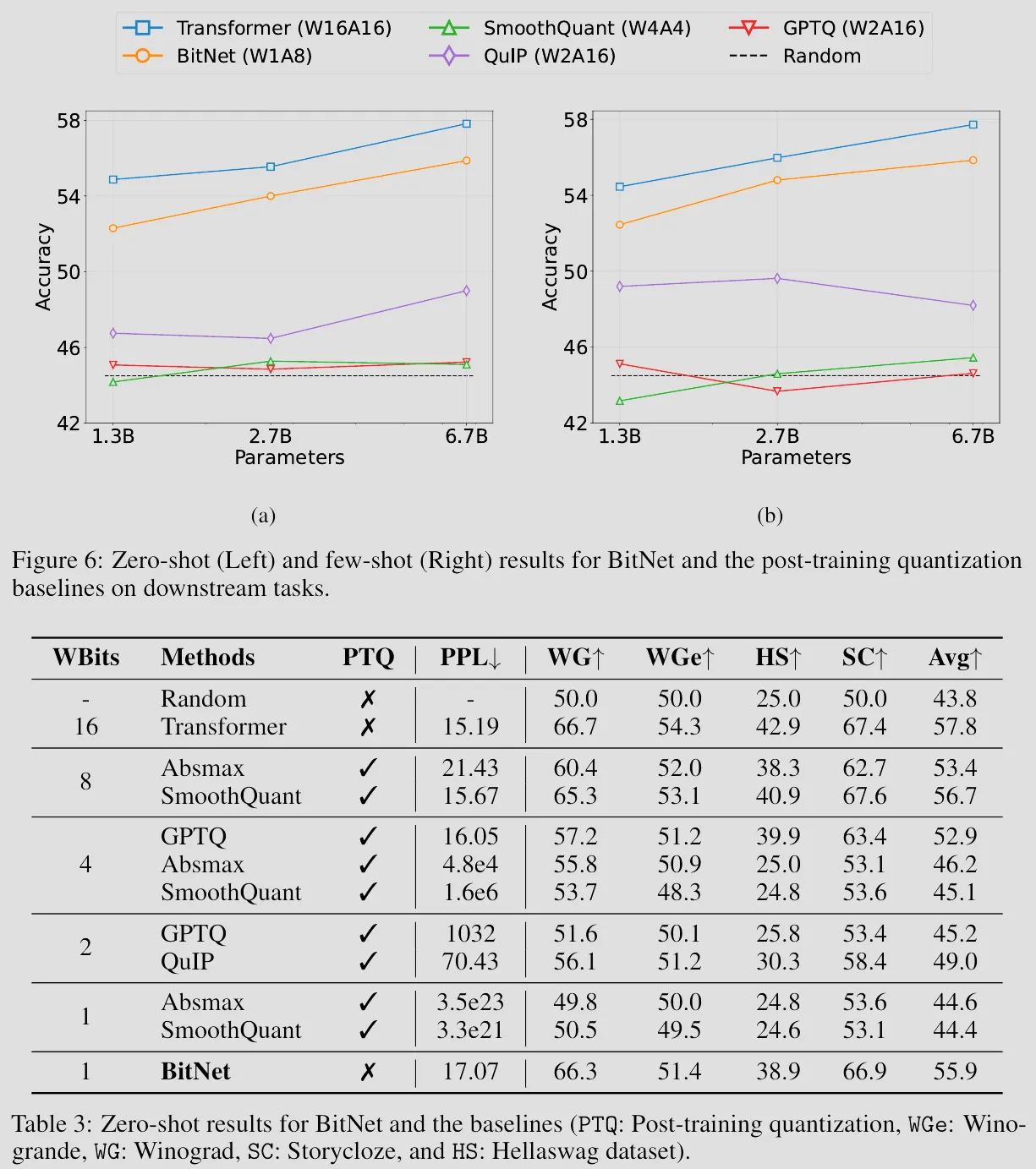 The results shown from BitNet paper indicates transformer models only need binarized weights to performer as well as same models with high-precision weights, and we can use those saved computation to make model even bigger & deeper which will perform much better than a smaller model with same amounts of bits for weights, this is almost the closest thing to a free lunch as one can get!