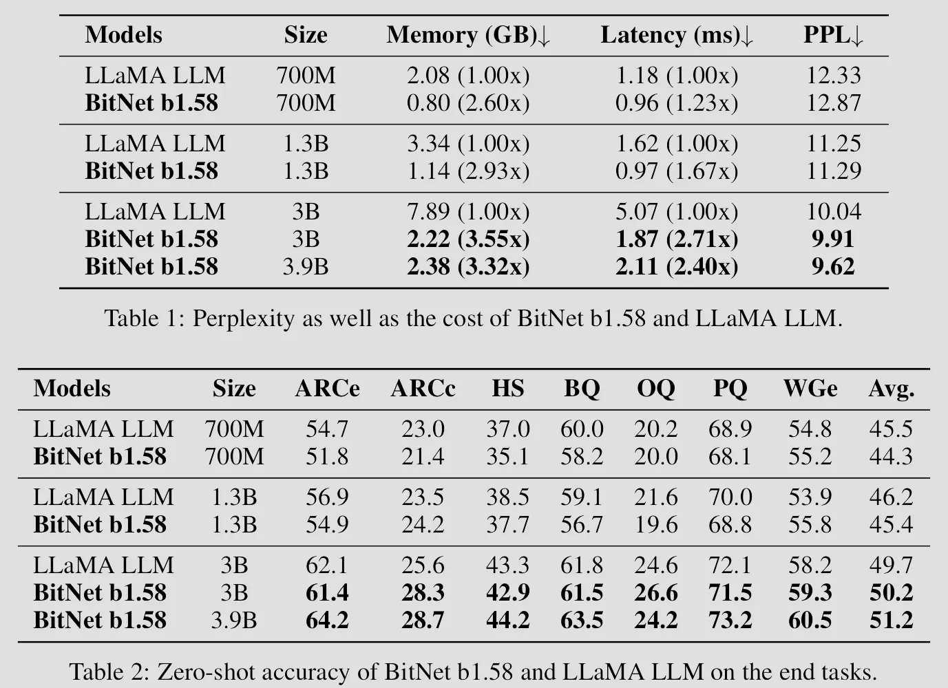BitNet is proposed in Oct 2023, it is a scalable and stable 1-bit Transformer architecture that achieves far better memory & computation efficiency while maintain competitive performance when compared to state-of-the-art quantized Transformer baselines (e.g., 8-bit, fp16)